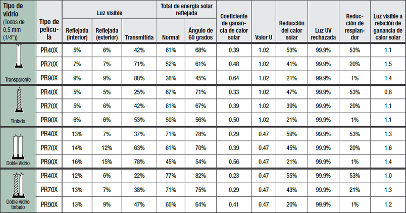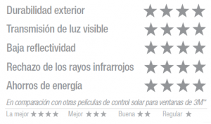 - Hasta un 97% de rechazo de los rayos infrarrojos, proveyendo ahorros de energía y aumento del confort