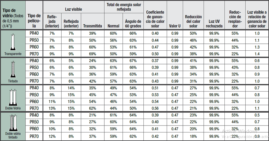 - Hasta un 97% de rechazo de los rayos infrarrojos, proveyendo ahorros de energía y aumento del confort**