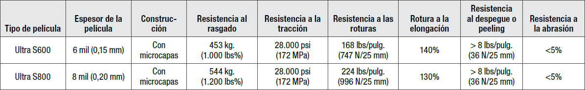 - Película con microcapas resistente al rasgado, para mejorar la protección de las personas, la propiedad y las posesiones